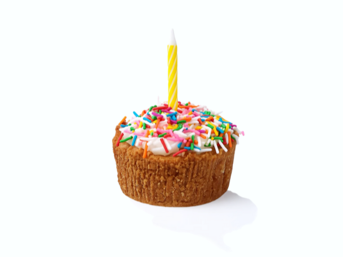 graham crust, cheesecake, confetti vanilla cake, vanilla frosting, rainbow sprinkles